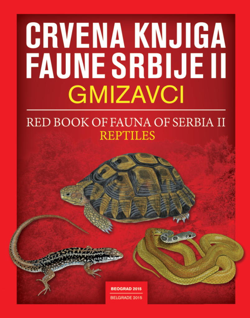 2015. године изашла је и друга црвена књига кичмењачке фауне, а то је Црвена књига фауне II – Гмизавци, у којој је приказан статус за 16 врста корњача, гуштера и змија (3 врсте корњача – барска, Грчка и шумска корњача, 7 врста гуштера – Кочијев гекон, кратконоги гуштер, љускави гуштер, шумски гуштер, јужни зидни гуштер, степски гуштер, планински гуштер и 6 врста змија – степски смук, четворопруги смук, шилац, поскок, шарка и шарган), што представља око 75% од укупно регистроване 24 врсте гмизаваца у Србији. Србија се на глобалном нивоу, као и у односу на Балканско полуострво, не одликује високим специјским диверзитетом гмизаваца. Међутим, по степену угрожености гмизаваца, Србија не заостаје за глобалним трендовима. Структура публикације је иста као и за црвену књигу водоземаца, и у њеној изради је такође учествовало 11 аутора и 3 уредника. Књига синтетизује свеобухватне информације, од општих одлика гмизаваца Србије и њиховог диверзитета у Србији и на Балкану, преко описа биологије и екологије појединачних врста издвојених по критеријумима угрожености, до степена угрожености станишта, фактора угрожавања и мера њихове заштите. Као такве, представљају основу разумевања и спровођења заштите ове групе кичмењака. Подаци и научна знања о заштити врста које монографија обухвата су: распрострањење, еколошке одлике, динамика популација, степен угрожености врста, узроци угрожености, мере заштите и препоруке метода праћења стања популација и утврђивања приоритета у заштити.