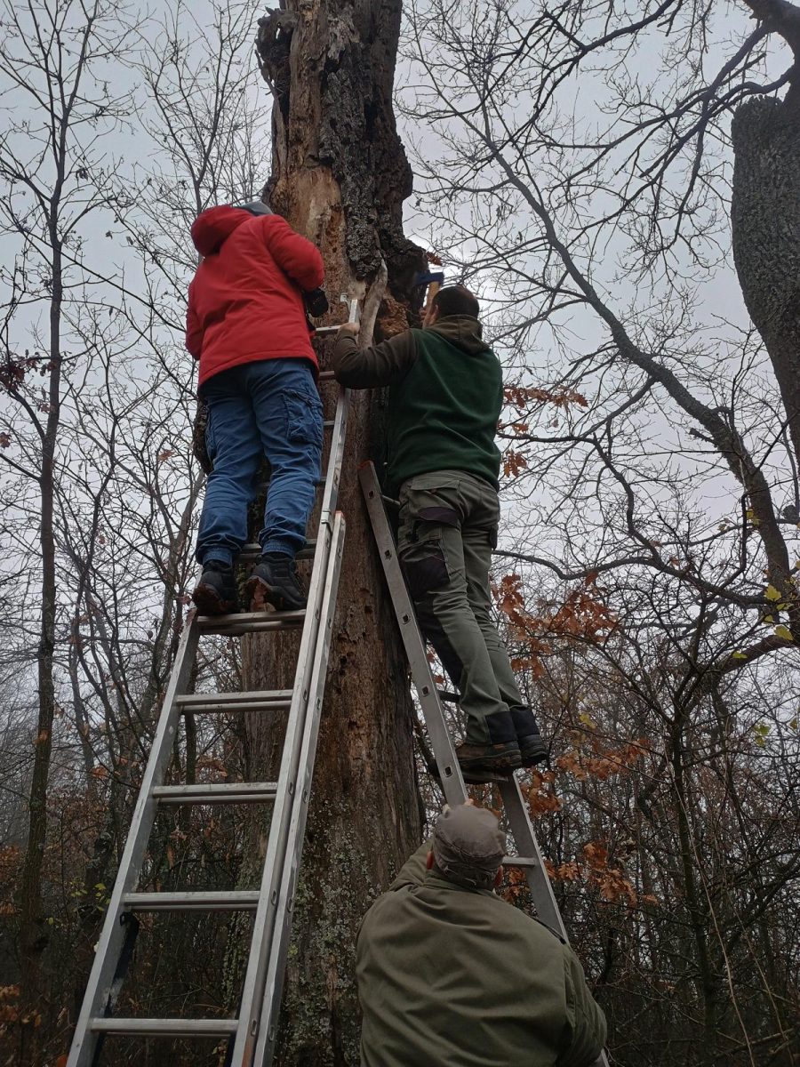Након припреме, кућица са јединкама је пажљиво постављена у унутрашњост одабраног стабла и осигурана жицом ради стабилности. На месту мање шупљине кроз коју је кућица убачена постављена је камера, која ће омогућити праћење активности и понашања слепих мишева током хибернације.